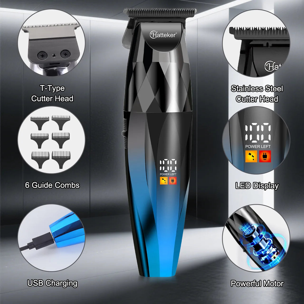 Tondeuse à cheveux électrique professionnelle sans fil Hatteker HT-6126 avec fonction barbe et styler, affichage numérique LED, pour hommes