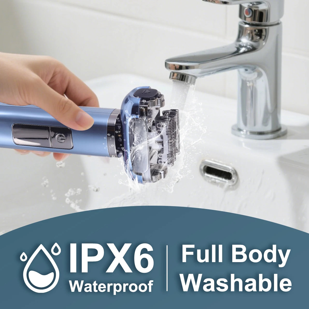 Rasoir électrique rechargeable HATTEKER HT-928 pour hommes, utilisable sur peau sèche ou humide, sans fil, avec lames flottantes et écran LED.