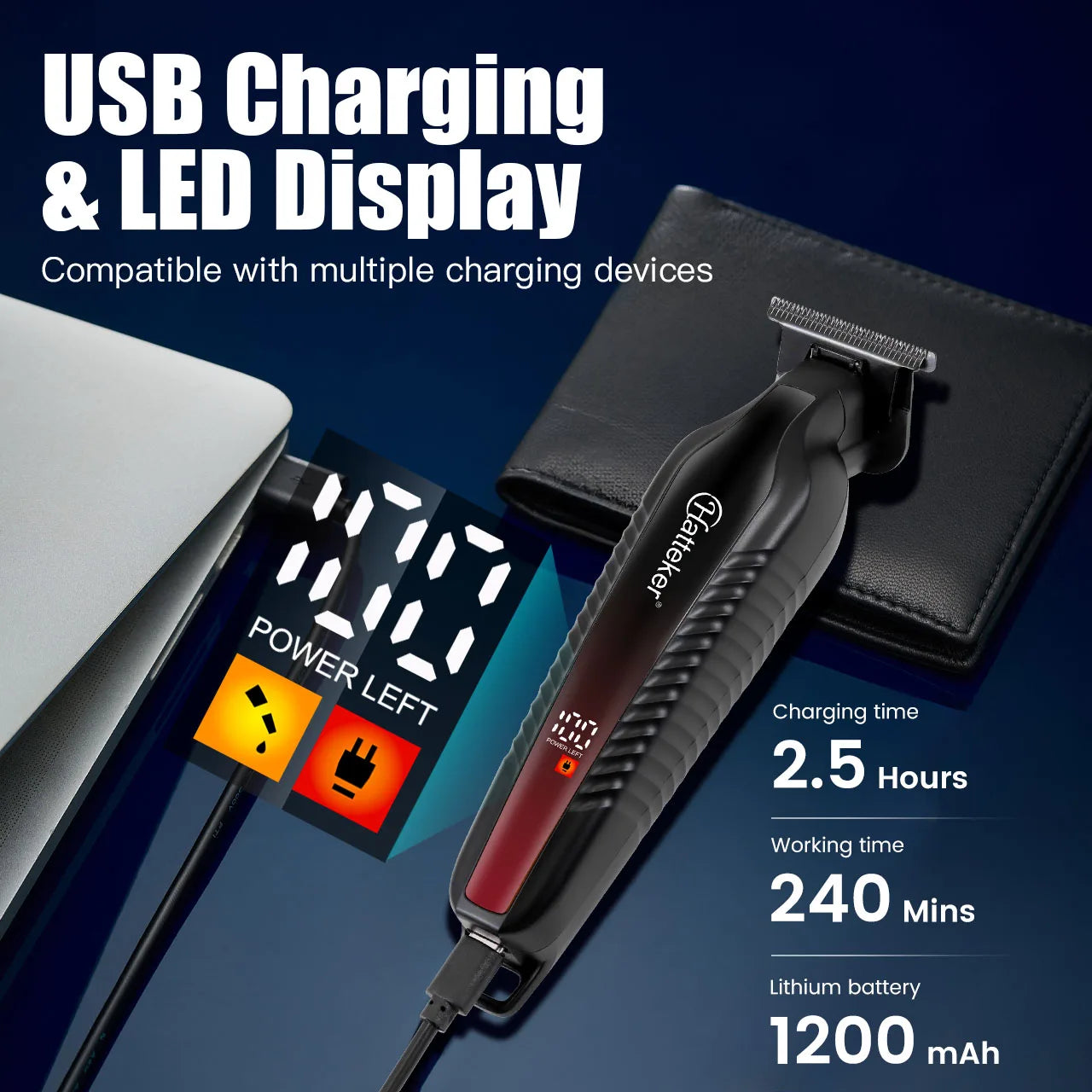 Kit de coupe de barbe professionnel Hatteker pour barbiers, tondeuse à cheveux sans fil rechargeable par USB